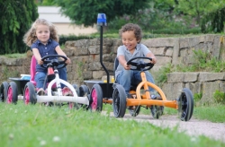 Berg buddy White je ideální hračka pro venkovní použití, která kombinuje hru a zlepšování koordinace a řidičských schopností. Tato motokára má výškově nastavitelnou sedačku (3 polohy) a volant, takže ji sndno přizpůsobíte právě pro Vaše dítě. Dále je vybavena systémem BFR (Brake Forward Revers) pro nejsnadnější šlapání a automatickou převodovkou, která umožňuje snadnou jízdu vpřed i vzad (speciální šlapací systém volnoběžky umožňuje jídzu dopředu, jízdu dozadu a brždění sešlápnutím pedálu dozadu). Stabilitu v terénu zajišťuje výkyvná náprava.